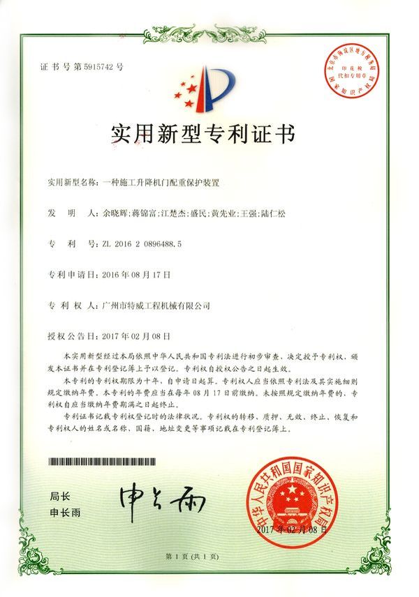 廣州市特威工程機(jī)械有限公司地處廣州市白云區(qū)神山鎮(zhèn),廣清高速神山出口附近,是一家施工升降機(jī)的專業(yè)生產(chǎn)廠家。公司成立于2011年,占地100000多平方米,注冊(cè)資金1060萬元,現(xiàn)有員工300余人其中工程技術(shù)人員33人,高級(jí)技術(shù)人員52人。